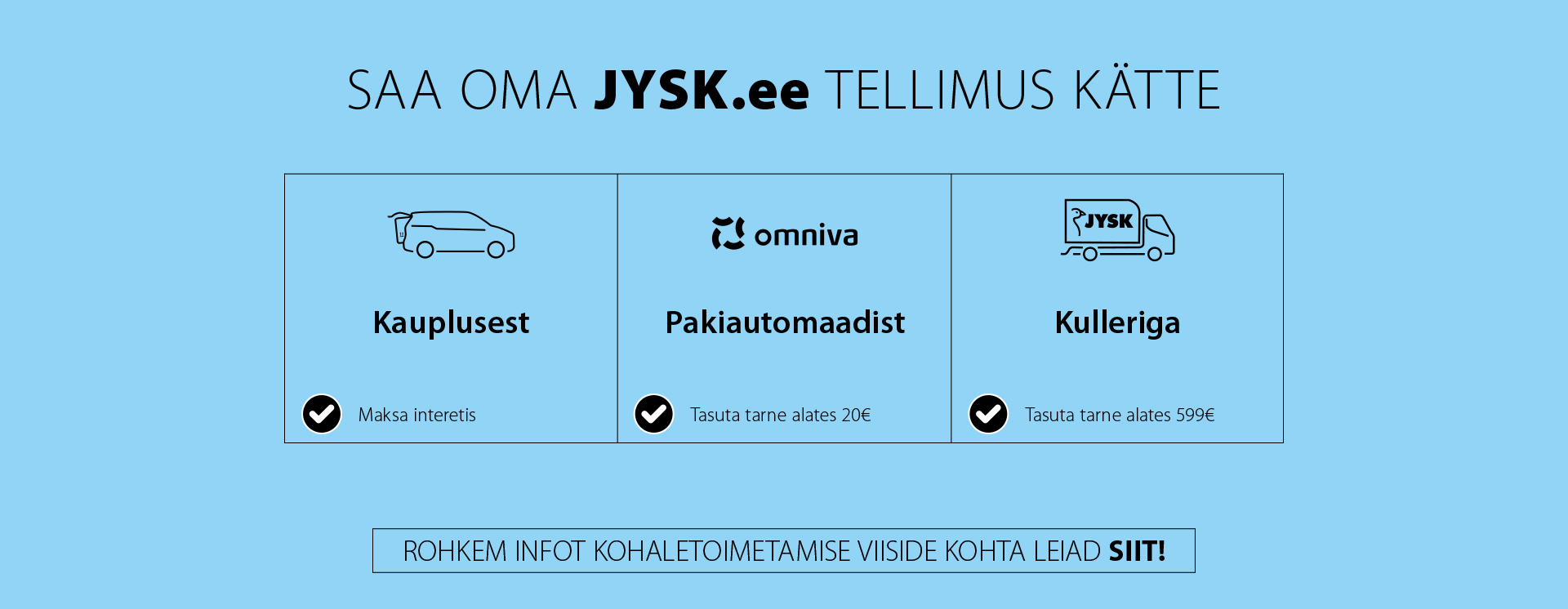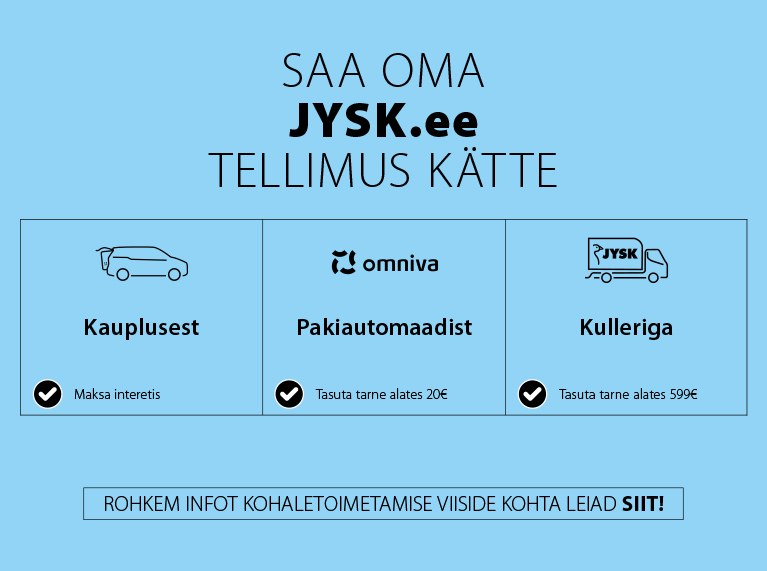 +372 880 1480 E-R 9:00-19:00; L-P 09:00-17:00 info@jysk.ee